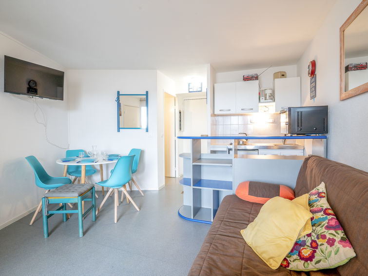 Apt 2 pièces 27 m2 au 1er étage. Séjour/salle à manger avec 1 divan-lit (140 cm, longueur 190 cm), TV, radio et ventilateur. 1 chambre avec 1 grand-lit (140 cm, longueur 190 cm). Alcôve avec 1 lit (80 cm, longueur 180 cm). Coin cuisine (2 plaques de cuisson, grille-pain, bouilloire électrique, cafetière électrique, combiné micro-ondes). Salle de bains, WC séparé. Balcon 6 m2, situation ouest. Meubles de terrasse. A disposition: Internet (Connexion WIFI, en sus). Veuillez noter: logement côté parking. Détecteur de fumée. Veuillez noter: SAISON 2021: en raison du COVID - la piscine de la résidence sera ouverte selon un protocole précis avec des plages horaires réduites. Annonce d'un particulier (art 155, IV du CGI).
