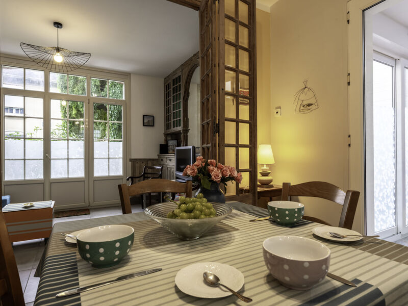 "Le Refuge", apt 2 pièces 45 m2, au rez-de-chaussée. Aménagement confortable et de bon goût: séjour avec 1 divan-lit (140 cm, longueur 190 cm), TV et écran plat. 1 chambre avec 1 grand-lit (160 cm, longueur 200 cm). Cuisine (lave-vaisselle, 3 plaques à induction, grille-pain, bouilloire électrique, micro-ondes, cafetière électrique). Douche, WC séparé. Chauffage électrique. Jardinet 40 m2. A disposition: sèche-cheveux. Internet (Connexion WIFI, gratuit). Veuillez noter: détecteur de fumée. Annonce d'un particulier (art 155, IV du CGI).