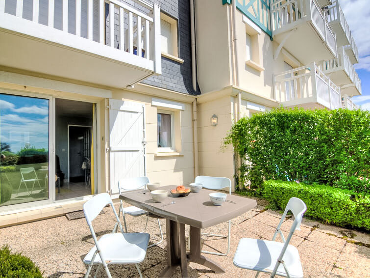 Blonville sur Mer à 4 km de Deauville: Résidence "Le Cap Bleu", de 3 étages. En-dehors de la localité, sur une colline, à 1.1 km de la mer, à 1.1 km de la plage. Infrastructures de la résidence: réduit pour bicyclettes. Magasins 1.1 km, magasin d'alimentation 1.1 km, supermarché 2.3 km, restaurant 1.1 km, arrêt de bus "Blonville plage" 1 km, gare ferroviaire "Deauville-Trouville" 4.5 km, piscine couverte 3.5 km, centre thermal "Deauville" 3.5 km. Terrain de golf (18 trous) 5.9 km, tennis 1.3 km, centre équestre 1.4 km. Attractions à proximité: Hippodrome de Clairefontaine 2.6 km, Mémorial de Caen 44 km, Plage du débarquement d'Arromanches 75 km. Veuillez noter: voiture recommandée. La remise des clés a lieu à l’agence Interhome de Deauville.