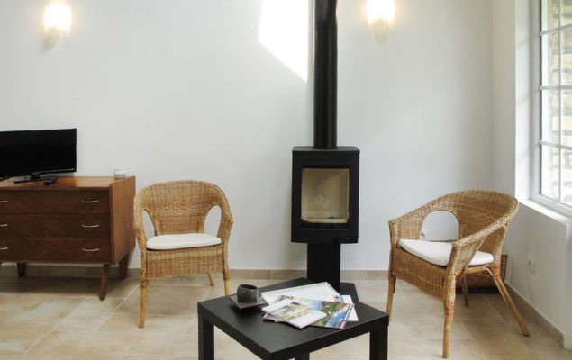 Domaine "De Malau", jumelé, environné par les prés et champs. Dans la localité, à 50 m du centre de Le Mesnil-Patry, à 5 km du centre de Bretteville-l'Orgueilleuse, à 20 km du centre de Caen. En commun: terrain 2'600 m2 avec champ. A usage privé: jardin 600 m2 (pas clôturé) avec champ, cour, place de parking (pour 2 voitures) sur le terrain. Magasins 5 km, supermarché 5 km, plage de sable "Courseulles" 23 km, piscine 10 km. Veuillez noter: le propriétaire habite sur le même terrain.
