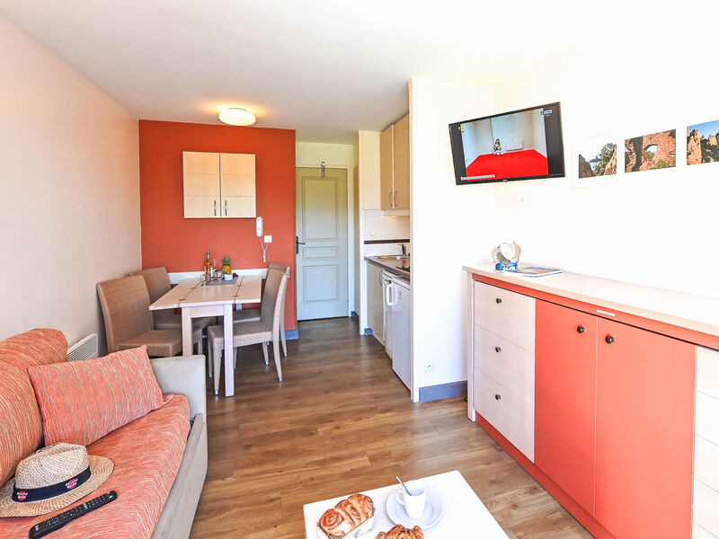 Grand complexe de vacances "Village Cap Estérel - Le Belvédère". En bordure de la localité, à 2 km du centre d'Agay, sur un versant, dans un quartier résidentiel, à 400 m de la mer, à 350 m de la plage, route à traverser, en bordure du terrain de golf, dans une zone piétonne. En commun: parc 210 ha, 5 piscines (disponibilité saisonnière: 06.Avr. - 03.Nov.). Bassin pour les enfants, terrain de pétanque, espace de jeux pour les enfants (toboggan, balançoire). Infrastructures de la résidence: spa (en sus), possibilité d'achats, blanchisserie (en sus). Magasins, magasin d'alimentation 200 m, supermarché 6 km, restaurant 150 m, boulangerie 500 m, arrêt de bus "Ligne 21" 300 m, gare ferroviaire "Saint-Raphaël-Valescure TGV" 9 km, plage de sable "Tiki Plage" 900 m. Marina 1 km, terrain de golf (9 trous), tennis 500 m. Attractions à proximité: Anthéor 8 km, Saint-Raphaël 9 km, Fréjus 13 km, Cannes 33 km, Saint-Tropez 50 km, Nice 76 km. Les lacs connus sont facilement accessibles: Lac Saint-Cassien. Région de randonnées: Massif de l'Estérel. Veuillez noter: complexe de vacances sans voiture, sans ascenseur. Animation en saison. Adapté(e) aux familles, garde d'enfants en saison (en sus). Résidence gardée. La remise des clés a lieu à l’agence Interhome de Cap Estérel. D’autres appartements sont également proposés à la location dans cette maison de vacances. L’accès aux appartements se fait par des marches, même au rez-de-chaussée.