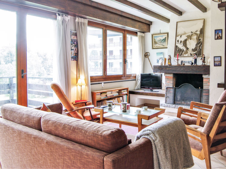 Apt 3 pièces 70 m2 au 3ème étage. Grand séjour/salle à manger avec TV et chaîne stéréo. Sortie sur le balcon. 1 chambre avec 1 grand-lit. Sortie sur le balcon. 1 chambre avec 1 x 2 lits superposés. Cuisine (four, lave-vaisselle, 4 plaques vitrocéramiques, bouilloire électrique, four micro-ondes, cafetière électrique). Salle de bains, WC séparé. Grand balcon, situation sud-est et situation sud-ouest. Superbe vue sur les montagnes. A disposition: lave-linge. Internet (Connexion WIFI, en sus). Veuillez noter: TV seulement FR. Détecteur de fumée.
