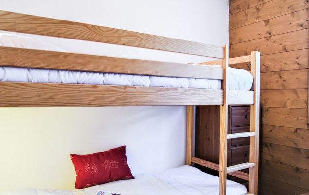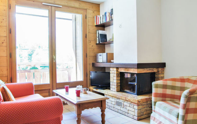Apt 3 pièces 50 m2 au 1er étage. Séjour/salle à manger avec cheminée et TV. Sortie sur le balcon. 1 chambre avec 1 grand-lit. 1 chambre avec 1 x 2 lits superposés. Cuisine ouverte (4 plaques de cuisson, four, lave-vaisselle, bouilloire électrique, cafetière électrique). Douche/WC. Chauffage électrique. Grand balcon, situation sud-ouest. Très belle vue sur les montagnes. A disposition: Internet (Connexion WIFI, gratuit). Place de parking No 34 au sous sol, hauteur 200 cm. Veuillez noter: TV seulement FR. Détecteur de fumée.