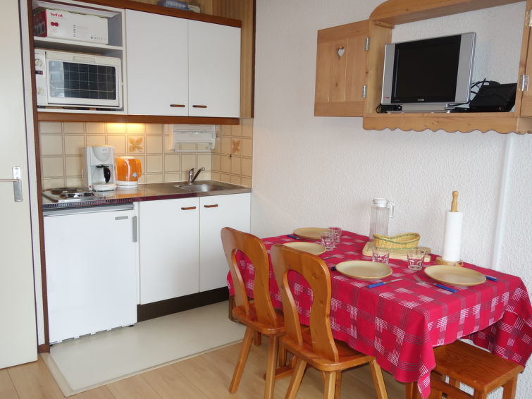"Les Hauts de Saint Gervais" studio 20 m2 au 1er étage. Séjour/salle à manger avec 1 lit gigogne (2 pers. 2 x 80 cm, longueur 190 cm), TV (écran plat). Sortie sur le balcon. Entrée avec 1 x 2 lits superposés (80 cm, longueur 190 cm). Coin cuisine (2 plaques de cuisson, four, grille-pain, bouilloire électrique, cafetière électrique, appareil à raclette). Bain/WC. Chauffage électrique. Balcon, situation est. Mobilier de balcon. Vue sur les montagnes. A disposition: Internet (Connexion WIFI, en sus). Place de parking No 225 (1 Voiture). Veuillez noter: logement non-fumeur. TV seulement FR. Détecteur de fumée.