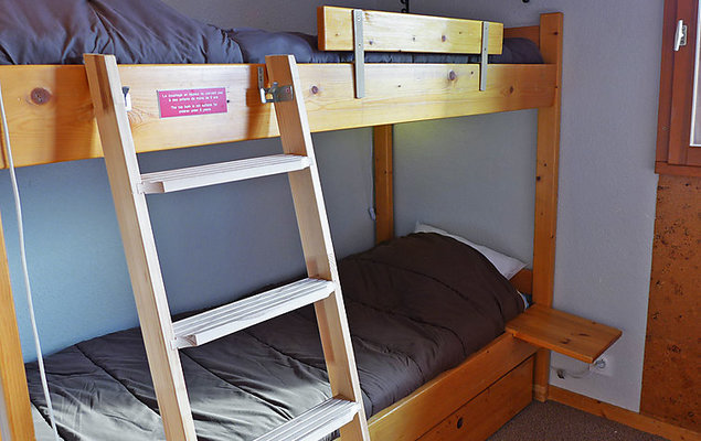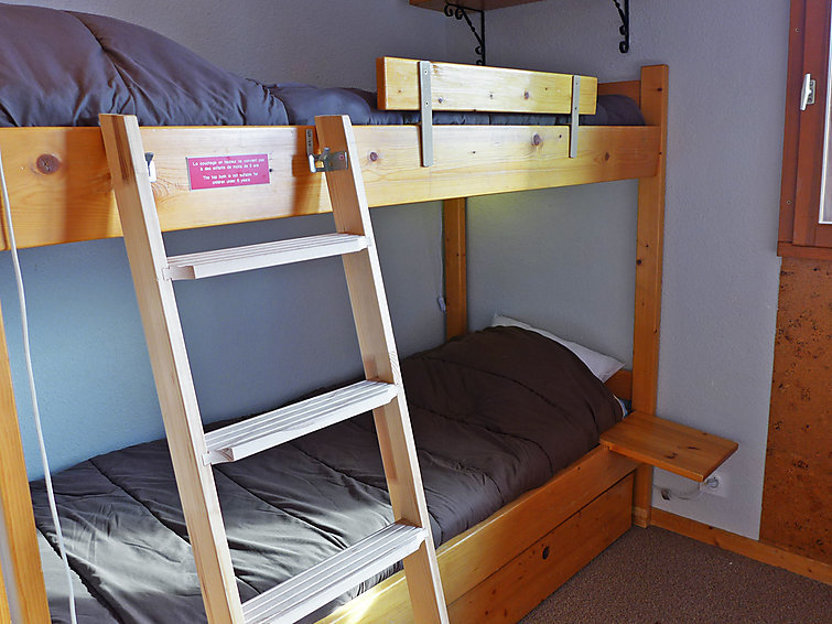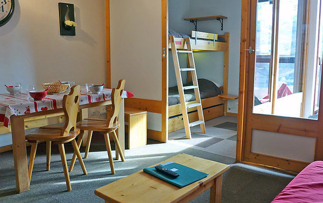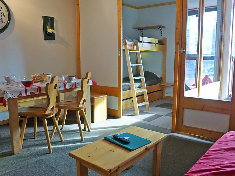 "Eskival 106", apt 2 pièces 30 m2 au 1er étage, situation sud. Clair, aménagement très agréable: séjour/salle à manger avec 1 divan-lit double (140 cm, longueur 190 cm), TV (écran plat). 1 chambre avec 1 lit (80 cm, longueur 190 cm), 1 x 2 lits superposés (80 cm, longueur 190 cm). Petite cuisine (4 plaques de cuisson, four, lave-vaisselle, four micro-ondes, cafetière électrique). Salle de bains, WC séparé. Chauffage électrique. Petit balcon 2 m2, situation sud. Belle vue sur les montagnes et les pistes de ski. A disposition: Internet (Connexion WIFI, en sus). Veuillez noter: logement non-fumeur. Détecteur de fumée.