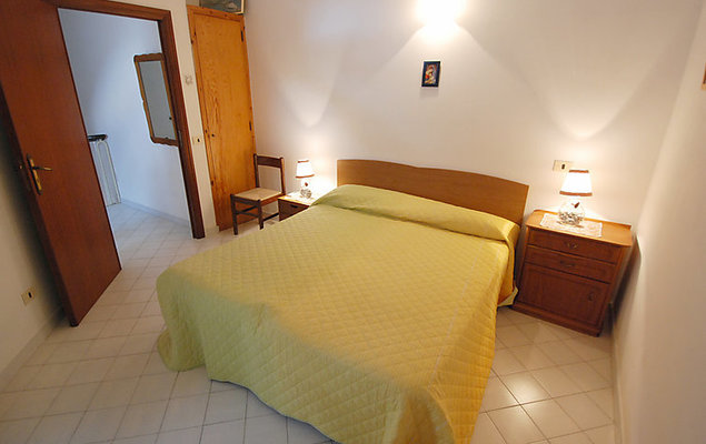 "A 1", apt 2 pièces 50 m2 sur 2 niveaux au 2ème étage. Partiellement mansardé, aménagement simple et fonctionnel: séjour/chambre à coucher avec baie vitrée avec 1 divan-lit, 1 lit gigogne, table pour les repas, coin-cuisine et TV (satellite). Coin cuisine (4 plaques de cuisson, four, congélateur). Air-conditionné, chauffage à air chaud (en sus). Possibilité de chauffage uniquement du 01.11. au 31.03. À l'étage supérieur: (escalier en colimaçon) 1 chambre double. Douche/bidet/WC. Belle vue sur la mer et la localité. A disposition: lave-linge. Veuillez noter: adapté(e) aux familles. Maximum 1 animal/ chien autorisé. Sans ascenseur.