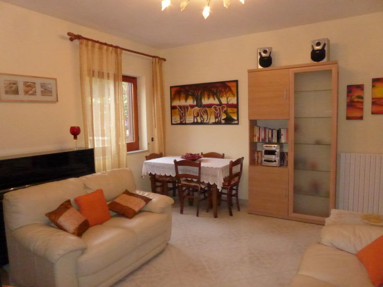 "Daisy", apt 2 pièces 60 m2, au rez-de-chaussée. Clair, partiellement rénové en 2018, aménagement confortable et agréable: 1 chambre double avec air-conditionné. Séjour/salle à manger avec 1 divan-lit et TV (câblée). Sortie sur le jardinet. Petite cuisine (4 plaques de cuisson, four micro-ondes, cafetière électrique) avec table pour les repas. Sortie sur le jardinet. Douche/bidet/WC. Air-conditionné, chauffage à air chaud (en sus). Possibilité de chauffage uniquement du 01.11. au 31.03. Terrasse 70 m2, jardinet. Meubles de terrasse, barbecue, chaises longues (2). A disposition: lave-linge, fer à repasser, moustiquaire, sèche-cheveux. Internet (Connexion WIFI, gratuit). Place de parking (cloturée) près de la maison.
