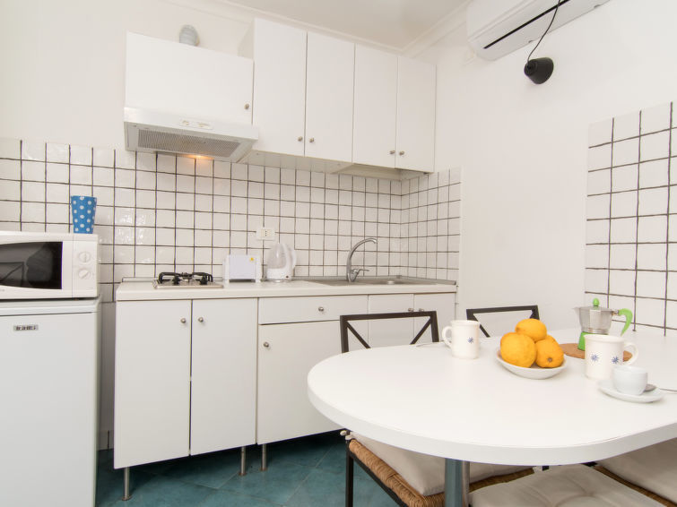 "Girasole", apt 2 pièces 40 m2, au rez-de-chaussée. Partiellement rénové en 2019, aménagement simple et moderne: petit séjour/salle à manger avec 1 divan-lit double, table pour les repas, coin-cuisine et TV (écran plat). Sortie sur le jardin, sur le jardinet. 1 chambre double avec baie vitrée. Coin cuisine (2 plaques de cuisson, grille-pain, bouilloire électrique, four micro-ondes). Douche/bidet/WC. Chauffe eau (60 litres). Pas de chauffage. Petit jardinet. Meubles de terrasse, chaises longues (2). Très belle vue panoramique sur la mer et le jardin. A disposition: fer à repasser, sèche-cheveux. Internet (Connexion WIFI, gratuit). Veuillez noter: réfrigérateur sans compartiment congélateur, maison non-fumeur. Extincteur.