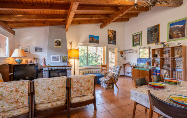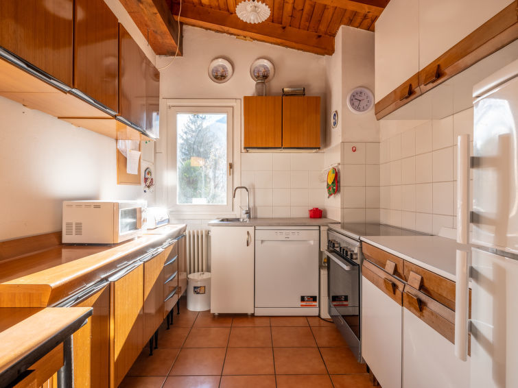 Apt 4 pièces 100 m2 au 1er étage. Aménagement fonctionnel: séjour/salle à manger avec cheminée (uniquement à titre de décoration), TV. 1 chambre double. 1 chambre avec 3 lits. 1 petite chambre avec 1 lit. Sortie sur le balcon. Petite cuisine (5 plaques de cuisson, four, lave-vaisselle, congélateur, cafetière électrique). Bain/bidet/WC, douche/bidet/WC. Chauffage au gaz (en sus). Possibilité de chauffage uniquement du 01.10. au 30.04. 2 balcons. Mobilier de balcon. A disposition: lave-linge, sèche-cheveux. Internet (Connexion WIFI, gratuit). CIR:012045-CNI-00048