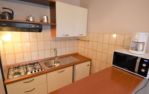 "Basic", apt 3 pièces 61 m2. Aménagement simple et fonctionnel: séjour/salle à manger avec 1 divan-lit double et TV (satellite). 1 chambre double. 1 chambre avec 2 lits. Coin cuisine (4 plaques de cuisson, four micro-ondes, cafetière électrique). Douche/WC. Chauffage au gaz. Possibilité de chauffage uniquement du 15.10. au 15.04. Balcon ou jardinet. Mobilier de balcon. A disposition: Internet (Connexion WIFI, gratuit). Veuillez noter: adapté(e) aux familles. Logement non-fumeur. Maximum 1 animal/ chien autorisé. CIR: 017082-CIM-00013