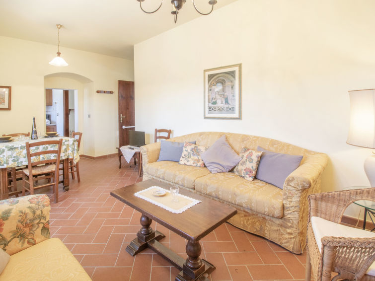 Apt 3 pièces 80 m2, au rez-de-chaussée. Aménagement fonctionnel et rustique: séjour/salle à manger avec TV (écran plat). 1 chambre avec 2 lits. 1 chambre double. Sortie sur le jardin. Cuisine (4 plaques de cuisson, four, lave-vaisselle). Douche/bidet/WC. Chauffage. Jardin. Vue panoramique sur les alentours.