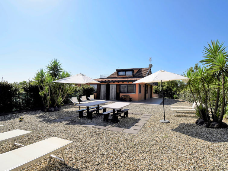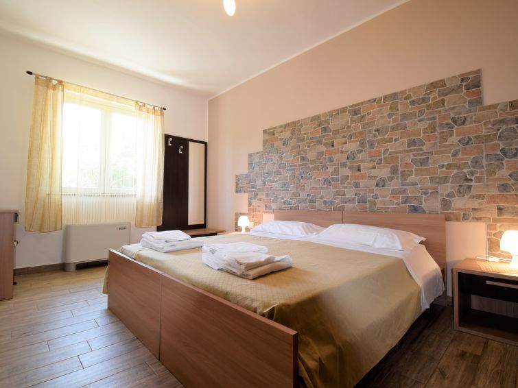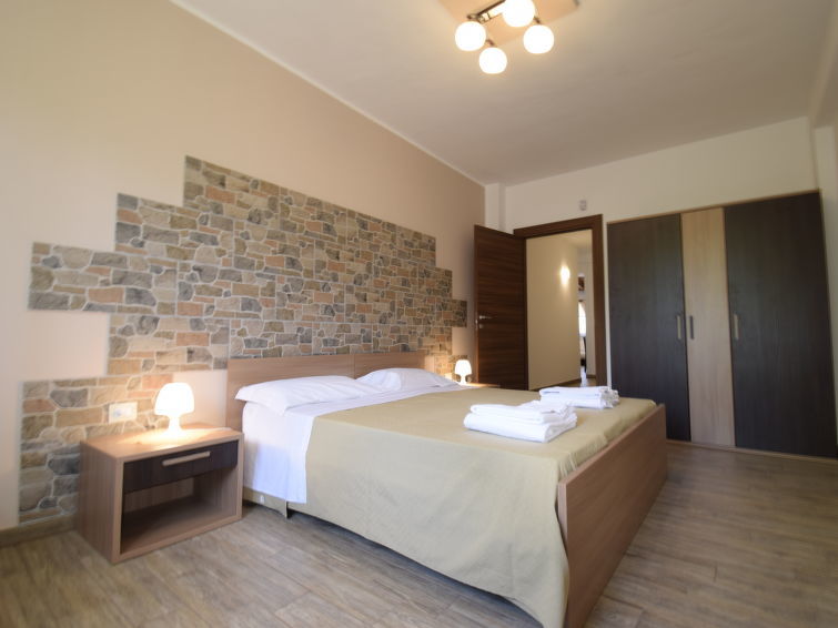 "Arancio", apt 3 pièces 75 m2, au rez-de-chaussée. Aménagement confortable et avec beaucoup de bois: séjour/salle à manger avec TV (satellite) (écran plat), air-conditionné et chauffage à air chaud. Sortie sur le jardinet. 2 chambres doubles, chaque chambre avec: air-conditionné et chauffage à air chaud. Coin cuisine (4 plaques de cuisson, lave-vaisselle, grille-pain, bouilloire électrique, four micro-ondes, congélateur, cafetière électrique). Douche/WC. Meubles de terrasse, chaises longues (4). Vue partielle sur la mer. A disposition: fer à repasser, moustiquaire, chaise haute pour enfant, lit bébé jusqu'à 2 ans, sèche-cheveux. Internet (Connexion WIFI, gratuit). Place de parking. Veuillez noter: logement non-fumeur.