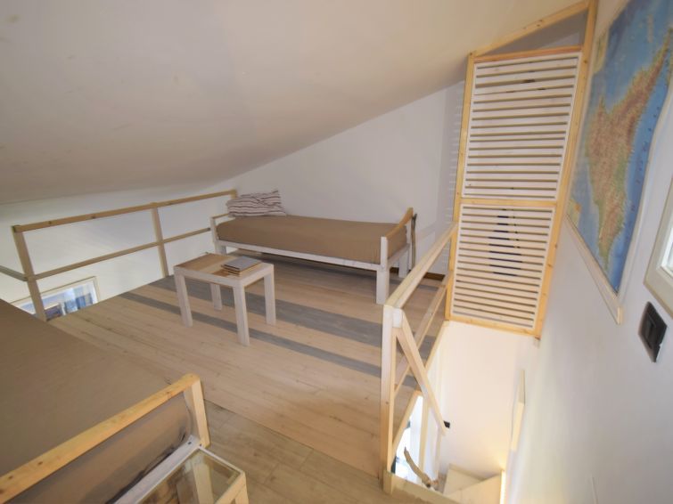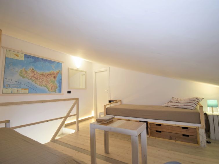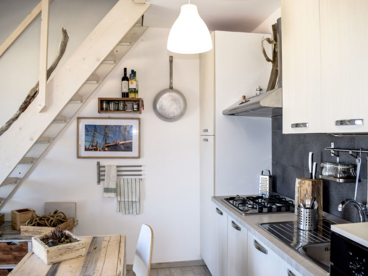 "Il Rifugio Marino", apt 3 pièces 75 m2 sur 2 niveaux au 1er étage. Aménagement simple et fonctionnel: séjour/salle à manger avec TV (satellite) (écran plat). Sortie sur la terrasse. 1 chambre double. Coin cuisine (4 plaques de cuisson, four, four micro-ondes, congélateur). Douche/bidet/WC. Chauffe eau (30 litres). À l'étage supérieur: (escalier raide) galerie ouverte avec 2 lits. 1 chambre double, mansardée hauteur plafond 70 - 190 cm, sans armoire avec ventilateur. Balcon 8 m2, terrasse 12 m2 partiellement couverte. Mobilier de balcon, barbecue. Vue sur la mer. A disposition: fer à repasser, sèche-cheveux. Internet (Connexion WIFI, gratuit). Veuillez noter: sans ascenseur.