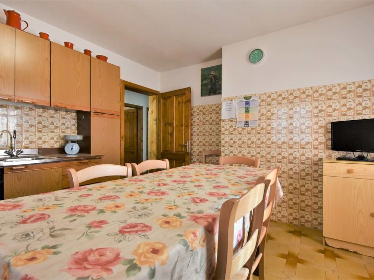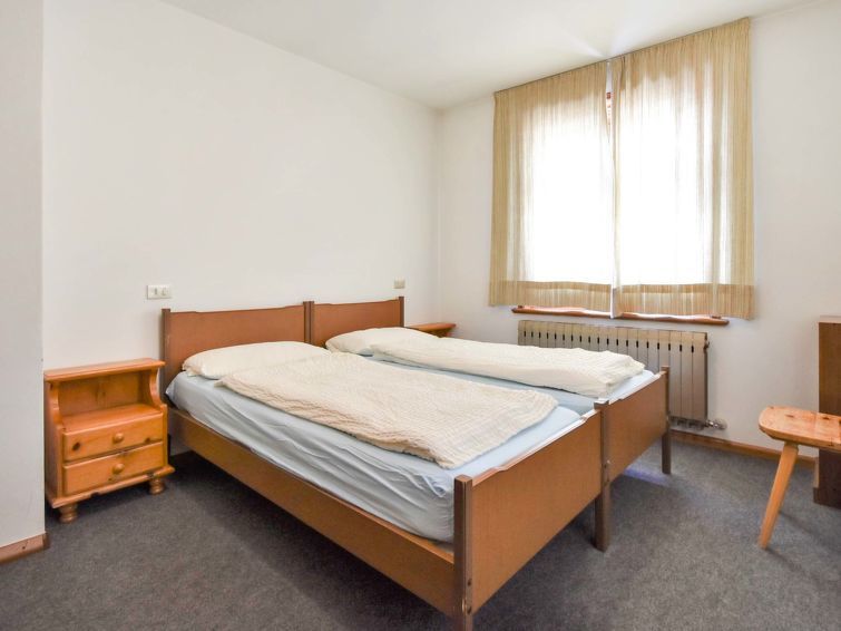 Apt 4 pièces 75 m2 au 2ème étage. Clair, aménagement simple et avec beaucoup de bois: séjour/chambre à coucher avec 1 divan-lit double (160 cm), TV (satellite). Sortie sur le balcon. 1 chambre avec 1 lit double (160 cm). Sortie sur le balcon. 1 chambre avec 2 lits (80 cm). 1 chambre avec 1 x 2 lits superposés (80 cm). Cuisine (four, lave-vaisselle, 4 feux, bouilloire électrique, four micro-ondes, cafetière électrique) avec table pour les repas. Sortie sur le balcon. Bain/WC, WC séparé. Chauffage au fuel. Moquette. Grand balcon. Chaises longues. A disposition: lave-linge, lit bébé. Internet (Connexion WIFI, gratuit). 014037-CNI-00361