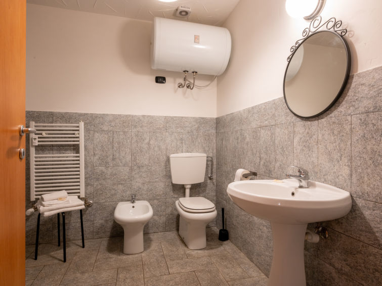"Casa Mati-bilocale", apt 2 pièces 70 m2 au 2ème étage. Aménagement simple et fonctionnel: séjour/salle à manger avec 1 divan-lit (180 cm), 1 x 2 lits superposés, table pour les repas et TV (satellite). Sortie sur la véranda. 1 chambre double. Coin cuisine (four, 4 plaques à induction, bouilloire électrique, congélateur, cafetière électrique). Douche/bidet/WC. Chauffage. Sol en pierres naturelles. Terrasse. Meubles de terrasse, loggia. A disposition: lit bébé jusqu'à 2 ans (en sus). Internet (Connexion WIFI, gratuit). 2 animaux/ chiens autorisés. Cette location est un exemple de location / d'appartement.