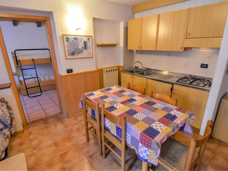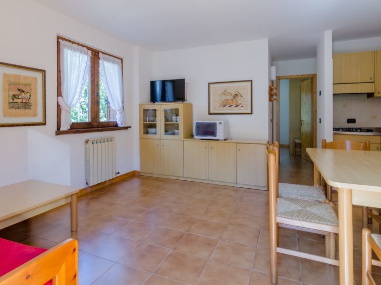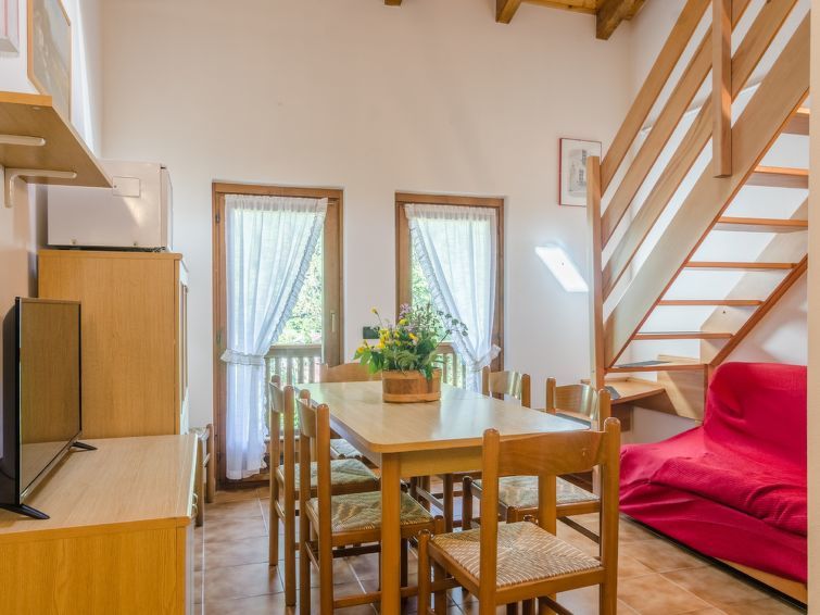 Commezzadura à 4 km de Mezzana: Belle résidence accueillante pour les enfants, confortable "Palazzina Sole", de 2 étages, environnée par les arbres et prés. 13 appartements dans la même entité. En-dehors de la localité, situation tranquille, ensoleillée, à 800 m des pistes de ski, dans une rue. En commun: jardin, pré. Tennis, ping-pong, barbecue, espace de jeux pour les enfants. Infrastructures de la Maison: ping-pong, baby foot, lave-linge (en commun, en sus). Place de parking (couvert, nombre de places limité, en sus) près de la maison, parking public possible dans la rue. Magasins, magasin d'alimentation, restaurant 500 m, arrêt du bus 100 m. Télésiège. École de ski d'enfants 800 m. Veuillez noter: La photo ne montre qu’un exemple de location de vacances. D’autres appartements sont également proposés à la location dans cette maison de vacances.