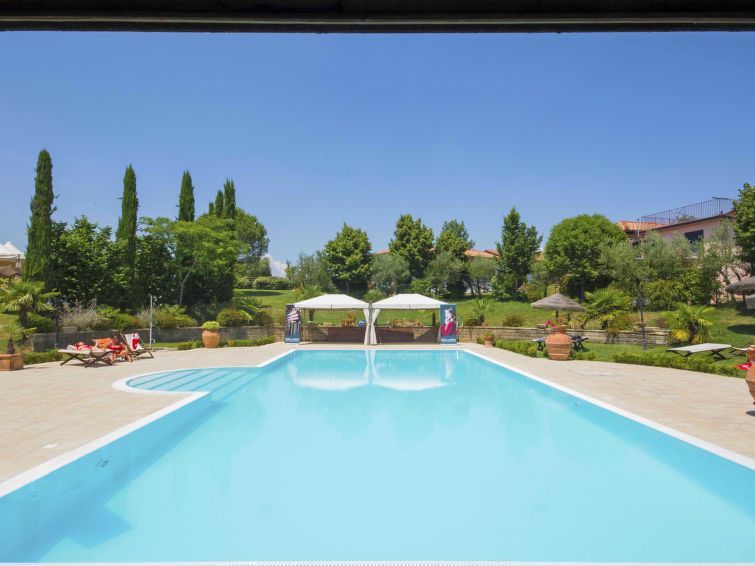Domaine agricole "Il Borgo Elena". 9 appartements dans la même entité. À 9 km du centre de Fucecchio, à 40 km du centre de Pisa, à 50 km du centre de Firenze, à 52 km de la mer. En commun: terrain 40 ha (clôturé), piscine (16 x 8 m, profondeur 140 cm, disponibilité saisonnière: 01.Mai.-25.Sep. et 30.Avr.-01.Oct.). Bassin pour les enfants, tennis (2 x dur), meubles de jardin, barbecue, espace de jeux pour les enfants. Infrastructures de la résidence: réception, restaurant, salle pour petits déjeuners, l'été, l'utilisation du sauna est incluse (1 fois par semaine), l'hiver, l'utilisation du sauna est incluse, lave-linge (en commun). Place de parking sur le terrain. Magasins 9 km, magasin d'alimentation 9 km, supermarché 9 km, plage de sable "Viareggio - Forte dei Marmi" 52 km, centre thermal "Montecatini Terme" 20 km. Terrain de golf (18 trous) 21 km, centre équestre 100 m. Attractions à proximité: Montecarlo 16 km, San Miniato 18 km, Vinci 20 km, Lucca 27 km, San Gimignano 55 km. Veuillez noter: adapté(e) aux familles, indiqué pour séniors. Adapté à l'organisation d'évènements. La photo ne montre qu’un exemple de location de vacances. D’autres appartements sont également proposés à la location dans cette maison de vacances. La propriété référencée IT5282.900.1 est située sur le même terrain. Les clients peuvent profiter de l'équitation à l'intérieur de la structure (en sus) et la pêche sportive dans le lac intérieur (inclus dans le prix). Piscine pour enfants.
