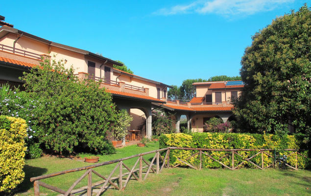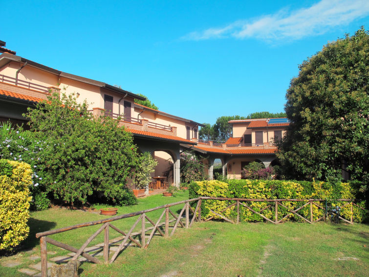 Petit complexe de vacances "Alberguccio Ranch Hotel", environné par les arbres et champs. 12 appartements dans la résidence. À 3.5 km du centre de Scarlino, à 9 km du centre de Follonica, à 4 km de la mer, dans la verdure. En commun: terrain 50'000 m2 avec pelouse et arbres, piscine (20 x 10 m, profondeur 140 - 250 cm, disponibilité saisonnière: 15.Mai.-15.Oct.). Douche extérieure, tennis (en sus). Infrastructures de la résidence: restaurant, bar, Connexion WIFI. Petit-déjeuner sur demande (en sus). Place de parking sur le terrain. Magasins 3 km, supermarché 3.9 km, restaurant 3 km, arrêt du bus 600 m, gare ferroviaire "Follonica" 10 km, ferry-boat "Piombino" 43 km, plage de sable "Puntone" 4 km. Port plaisance 6 km, marina 6 km, terrain de golf (18 trous) 10 km, ecole de surf 7 km, centre équestre 7 km. Attractions à proximité: Cala Violina 9.5 km, Massa Marittima 19 km, Castiglione della Pescaia 23 km. Les lacs connus sont facilement accessibles: Accesa 19 km. Région de randonnées: Mountain-bike 600 m. Veuillez noter: le propriétaire a un chien.
